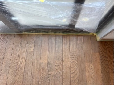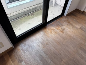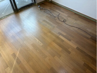 フロア全体で所々が白く色褪せて、掃き出し部分はニスが塗られている状態でした。