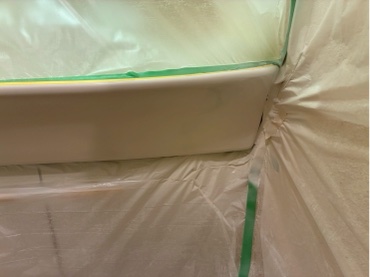 洗面ボールの艶に合わせて塗装し施工完了です。