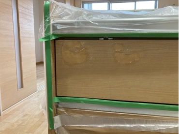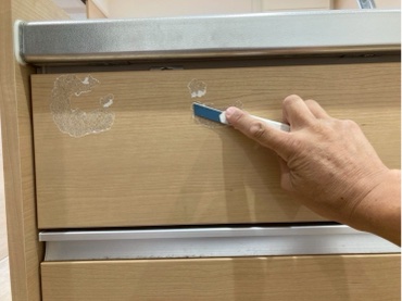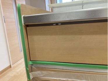 今回は不動産会社様より、キッチンの表面剥がれ補修です。再販物件現場になります。