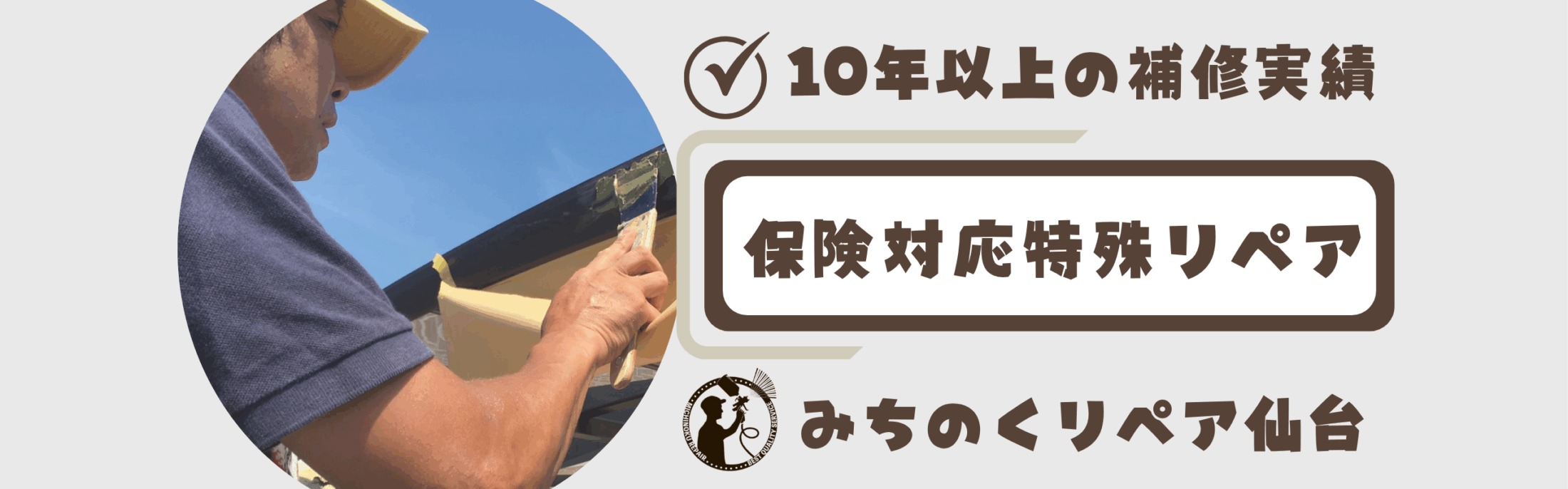 台風や車両接触などで破損した外壁・ブロック塀の補修も、保険適用リペアで対応可能です。欠け・ひび割れ・塗装剥がれを部分補修し、既存の色や質感に合わせて自然に再現。外観を損なわず強度も確保します。交換や全面張り替えに比べてコストを大幅に削減でき、申請前の写真見積りにも対応。仙台市を中心に、名取・多賀城・富谷・塩竈など宮城県全域で出張可能です。