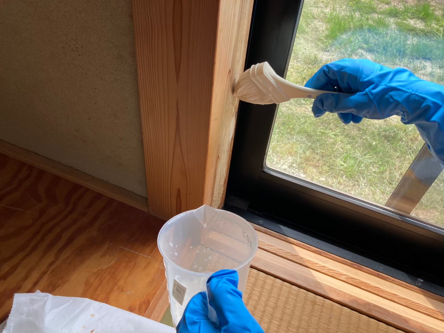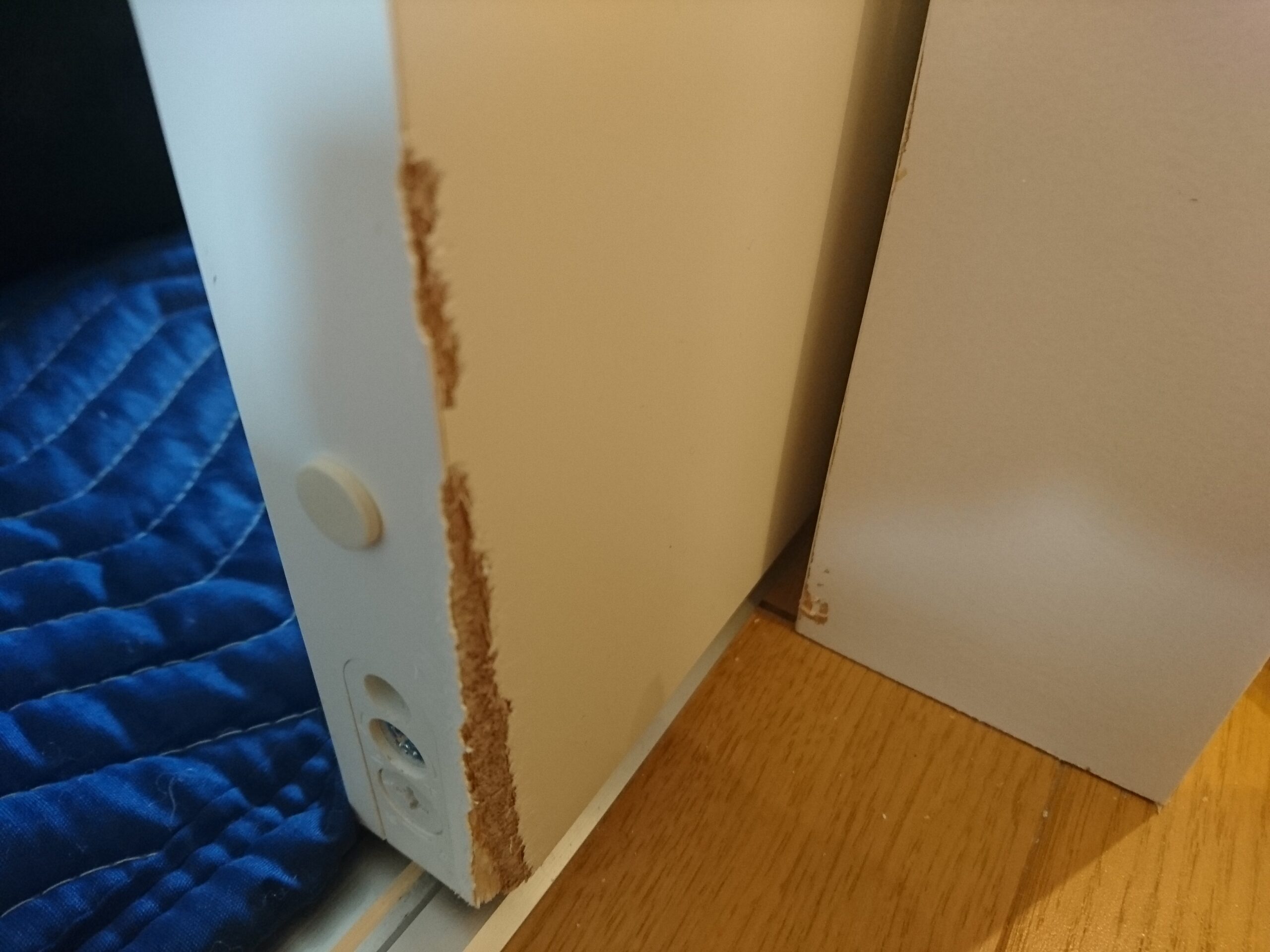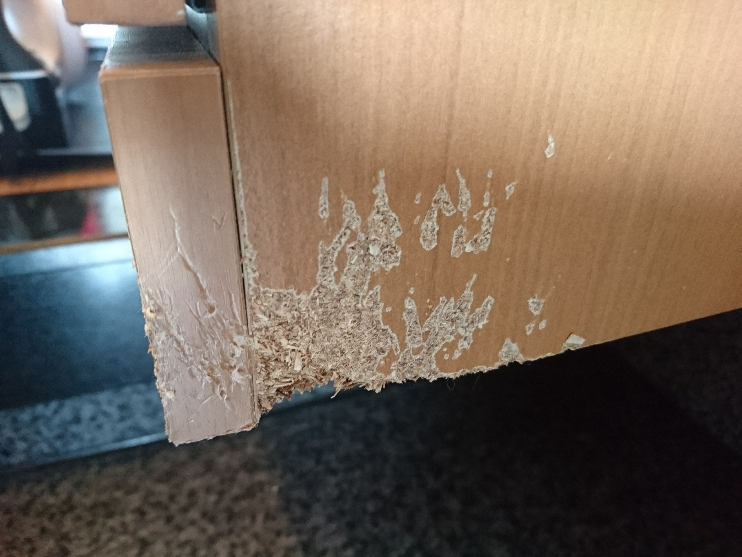 ケージまわりや巾木・壁際を中心に、ハムちゃんやうさぎちゃんのかじり跡やひっかき傷が目立ってしまうケースは多く見られます。当店では、木部や壁材に合わせた専用の補修剤と調色技術で、できるだけ自然な状態へ整えます。